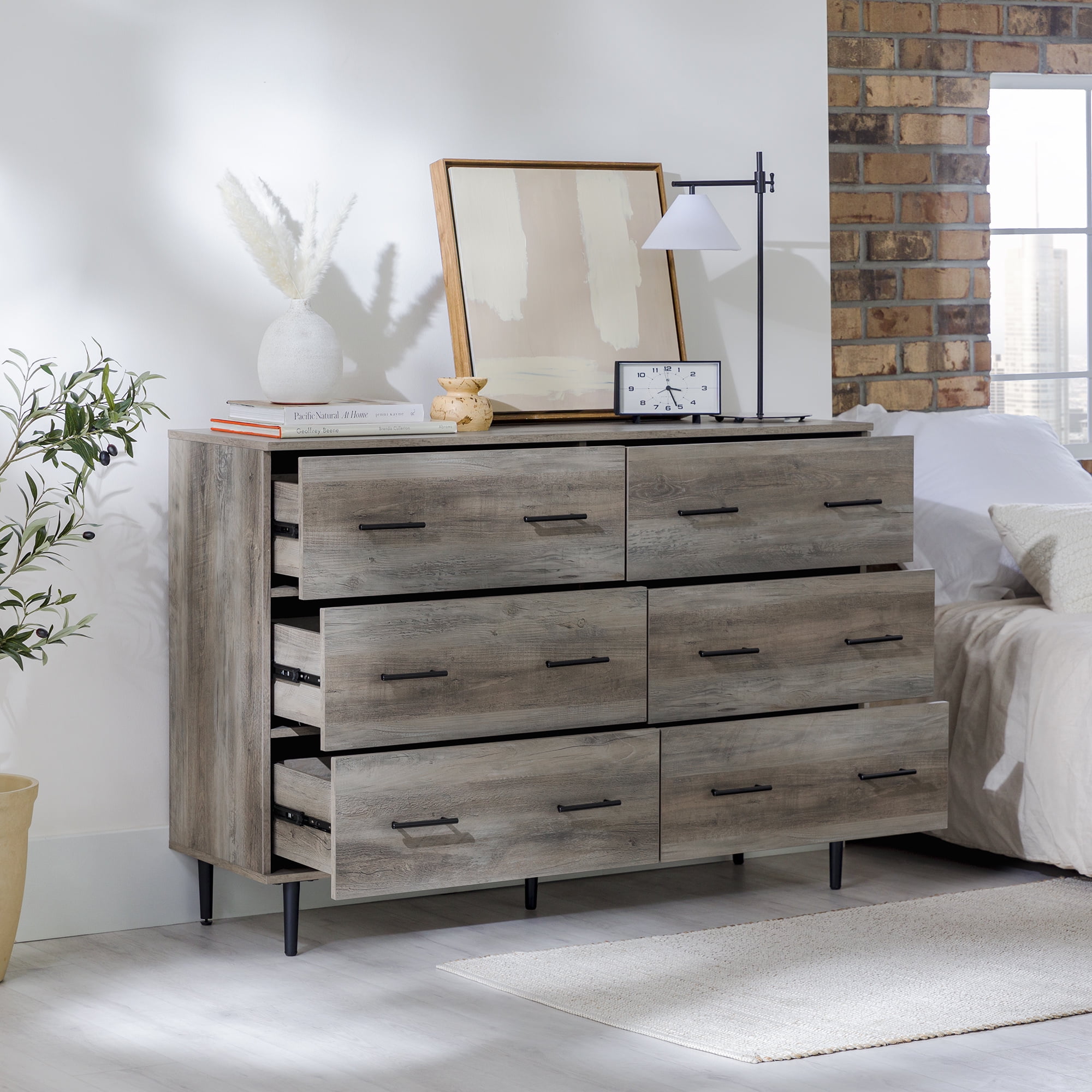 Savanna Modern Wood 6 Drawer Dresser White Rustic Oak Walmart Com